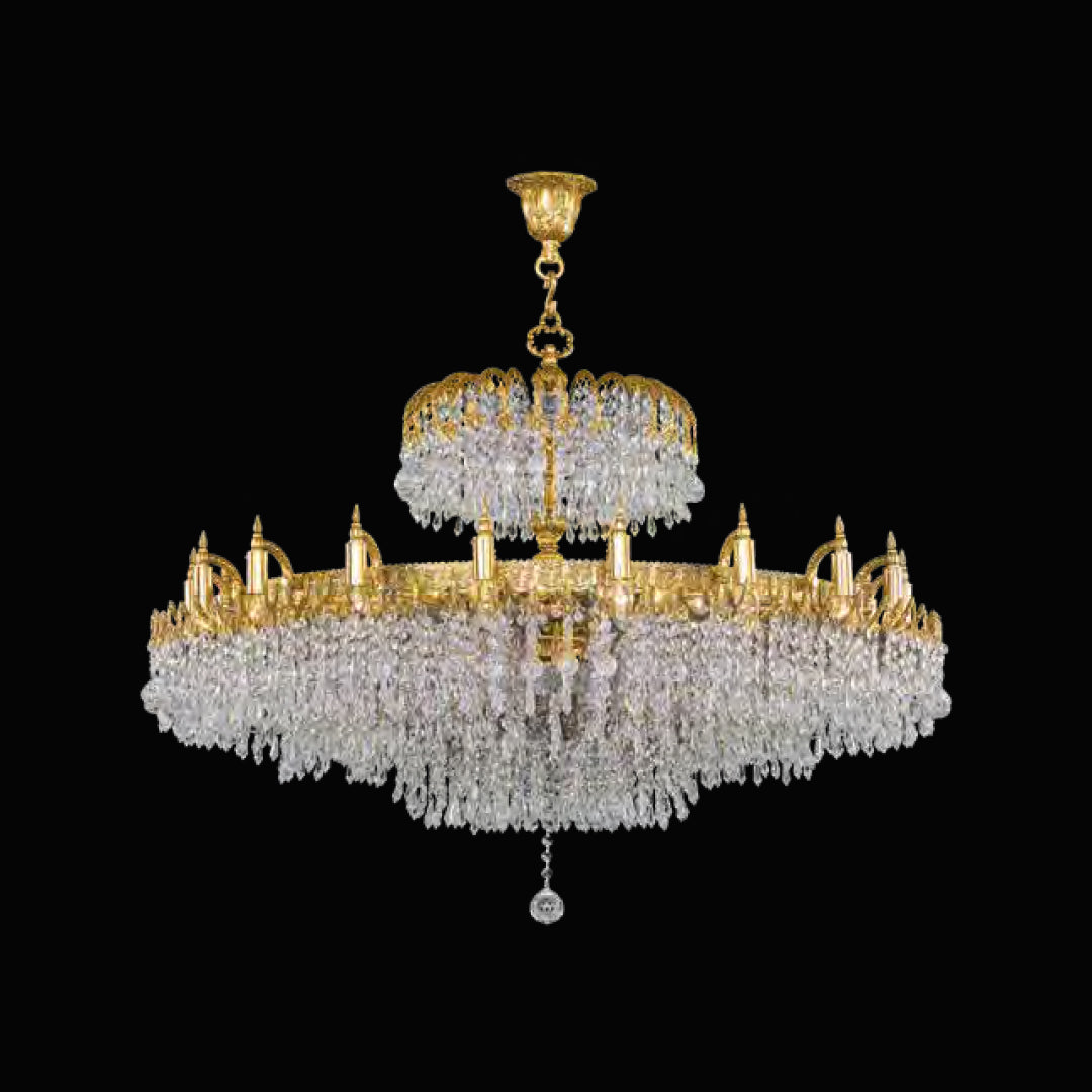 Couronne Impériale Avec ses deux niveaux parfaitement circulaires, ce lustre joue la carte de la symétrie et du raffinement.